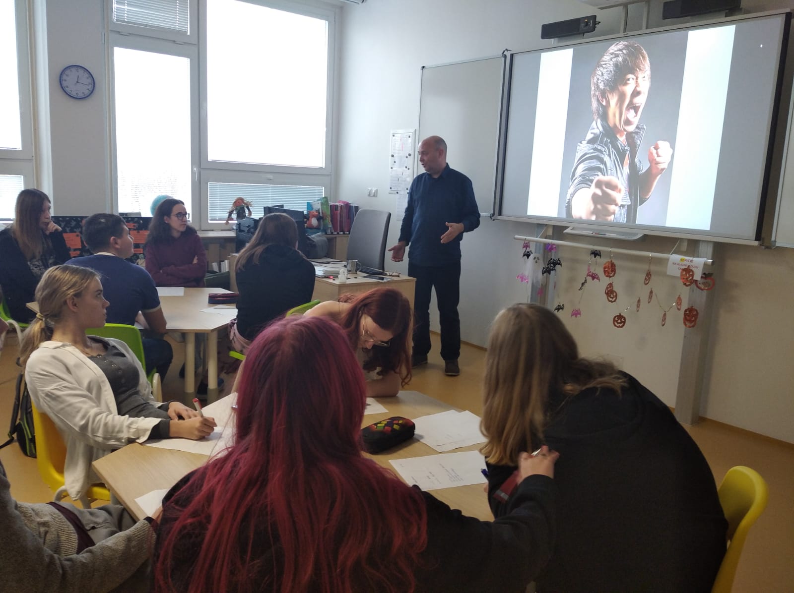 Dne 15.11. v rámci hodiny Světa práce nás navštívil pedagog ze střední školy Humanitas, aby nám řekl něco o škole, jejím učebním plánu a zařazení absolventů do pracovního procesu. Škola Humanitas sídlí v Litvínově a je zaměřená na ekologii, životní prostředí. Děkujeme panu Malátovi za besedu a určitě se přijdou někteří z nás podívat na Den otevřených dveří a možná i studovat na této škole.