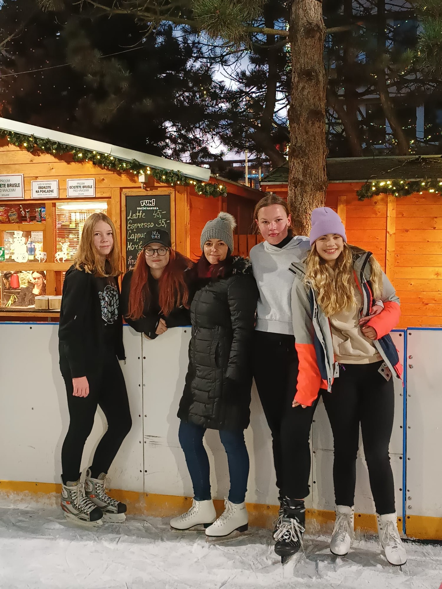 Dne 8.12. jsme místo hodin tělesné výchovy vyrazili společně na bruslení k Magistrátu. Bruslení náš moc bavilo. Místo hodiny bruslení jsme skoro celá třída bruslili i několik hodin. Vánoční atmosféra v podvečerním čase byla opravdu kouzelná.